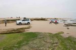 Das Frühstück wie immer einfach, aber ausreichend (Fladenbrot mit Nutella und Marmelade schmeckt überraschend gut). Dann weiter durch die Wahiba Sandwüste. Ungewöhnlicherweise war der Himmel bedeckt und dann fing es wirklich und wahrhaftig an zu regnen, ein Umstand, der zu dieser Jahreszeit absolut ungewöhnlich ist. Dadurch fiel die Temperatur etwas unter 30°…..