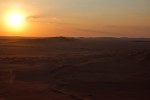 Nach einiger Zeit auf der Schotterpiste waren dann am Horizont die ersten großen Sanddünen zu erkennen, jetzt begann das leere Viertel, die Rub al Khali. Nichts als Sand in „Sanduhrkörnung“, angehäuft zu endlosen Dünen. In der Nähe einer Oase (Al Hashman N 18°27.368 E 053°06.077 ) haben wir dann unser Camp ( N 18°27.200 E 053°07.986 ) direkt in den Dünen aufgeschlagen und wurden mit einem phantastischen Sonnenuntergang belohnt. In der Ebene um die Oase herum, waren übrigens jede Menge Geoden zu finden. Das Abendbrot war wieder mal ein „Festessen“, eine Suppe mit Thunfisch, Nudeln und viel Gemüse :-).