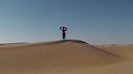 Nachts schabte etwas am Zelt, nach einem abendlichen Gespräch über omanische Leoparden……letztlich wurde ein etwa 2 cm großer, schwarzer Käfer als Verursacher der Geräusche ausgemacht – nochmal Glück gehabt. Nach dem Frühstück war wieder Wandern angesagt, damit die Fahrer in Ruhe das Gepäck verstauen konnten. Allerdings verlief die Wanderung diesmal etwas unkoordiniert, so nach dem Schema, 12 Touris stolpern durch die Dünen, natürlich weit auseinandergezogen und auf Wegen, denen kein Landcruiser folgen kann. Am Ende haben aber doch alle ihr Fahrzeug gefunden (oder besser umgekehrt), Jochen Reiseleiter war allerdings nicht sehr amused…