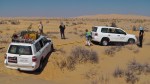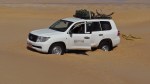 Dann sollte es in nordöstliche Richtung weitergehen, leider sind wir nicht sehr weit gekommen, der Sand in den Dünen war teilweise sehr locker, so dass letztendlich zwei Fahrzeuge festsaßen. Es hat dann einige Zeit und wohl auch etwas Schweiß gekostet, bis alles wieder flott war. Da an dieser Stelle offensichtlich kein Durchkommen war, ging es erstmal zurück zur Oase. Hier konnten wir zum Mittagspicknick freundlicherweise wieder das (klimatisierte) Gästezimmer der Beduinenfamilie benutzen, was bei der doch sehr hohen Außentemperatur extrem angenehm war.