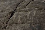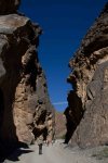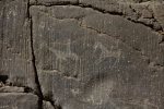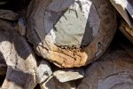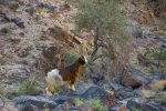 Nach dem Frühstück, dem Zusammenpacken und Verladen der Sachen ging es weiter auf den teilweise sehr steilen und sehr steinigen „Straßen“. Weit kamen unsere Fahrzeuge im ersten Anlauf allerdings nicht, eine offensichtlich erst vor kurzem abgegangene Steinlawine machte eine Weiterfahrt unmöglich, hier gab`s nur eins – umkehren. Glücklicherweise gibt es ja zumeist mehrere Wege zum Ziel, so auch hier. Die weitere Fahrt durch diese raue Bergwelt auf ebensolchen Wegen verlief durch eine wirklich atemberaubende Landschaft, mit Wadis, tiefen Schluchten und schroffen Felsen. Der nächste Halt erfolgte an einer kleinen Ansiedlung (N 23°16.026 E 057°23.866), hier sollte es echt omanischen Honig geben. Leider war der Imker nicht zu Hause, lediglich einige Ziegen „bewachten“ die Bienenstöcke. Die Art der Bienenhaltung unterscheidet sich doch etwas von der in Deutschland. Die Bienen bauen ihre Waben in waagerecht liegenden, hohlen Palmstämmen, deren Enden mit Zement oder Lehm geschlossen werden, lediglich ein kleines Einflugloch bleibt frei. In der Nähe des kleinen Ortes Fasan waren auch einige mehrere tausend Jahre alte Felsmalereien zu bewundern (N 23°19.898 E 057°18.808).