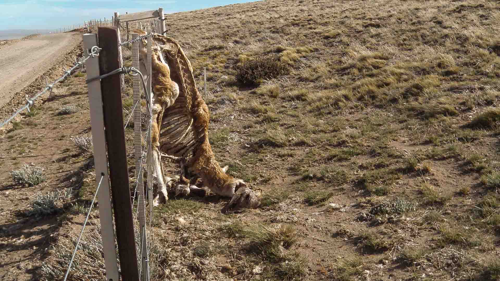 Das wir uns verfahren haben nur ganz nebenbei, Umweg ca. 100 km (natürlich auch zum großen Teil Schotter). Die Beschilderung ist hier eben nicht so wie gewohnt. Dank Garmin mit OSM-Karte konnten wir aber auf den rechten Weg zurückfinden. Ansonsten bietet die Landschaft einen weiten,  uneingeschränkten Blick mit relativ wenig Abwechslung. Ab und zu sieht man einige Guanakos links und rechts der Piste, eines hing noch am Zaun (egal wie einsam die Gegend ist, Zaun an beiden Seiten der Straße ist immer), das arme Tier ist wohl etwas zu kurz gesprungen und die Geier hatten ein paar fette Tage.