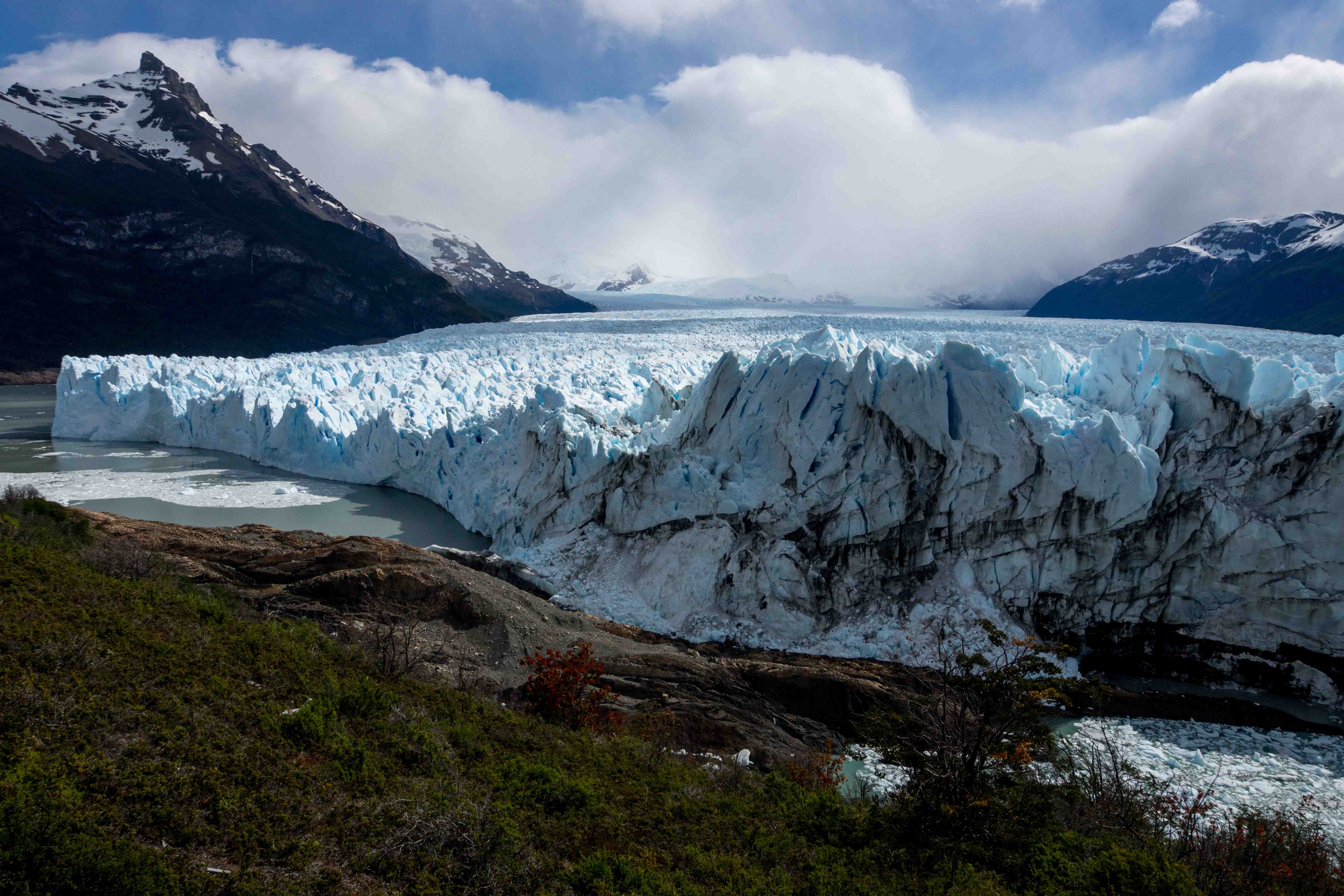 Zu besichtigen ist hier einer der beeindruckendsten Gletscher überhaupt, der Perito Moreno. Der Zugang ist gut ausgebaut (Eintritt 130 Pesos pro Person) und man kommt relativ dicht an die Abbruchkante heran. Der Anblick des Gletschers war so beeindruckend, dass wir uns überhaupt nicht davon trennen konnten. Jeden Moment könnte ja ein großes Stück des Gletschers abbrechen, allerdings passierte das immer, wenn die Kamera gerade aus war. Ein Knall, ähnlich wie beim Gewitter, platsch, eine große Welle und vorbei 😦 . Als Zugabe gab´s noch einen fliegenden Condor und diesmal hatte ich sogar schnell genug die 300mm-Linse drauf 🙂 .